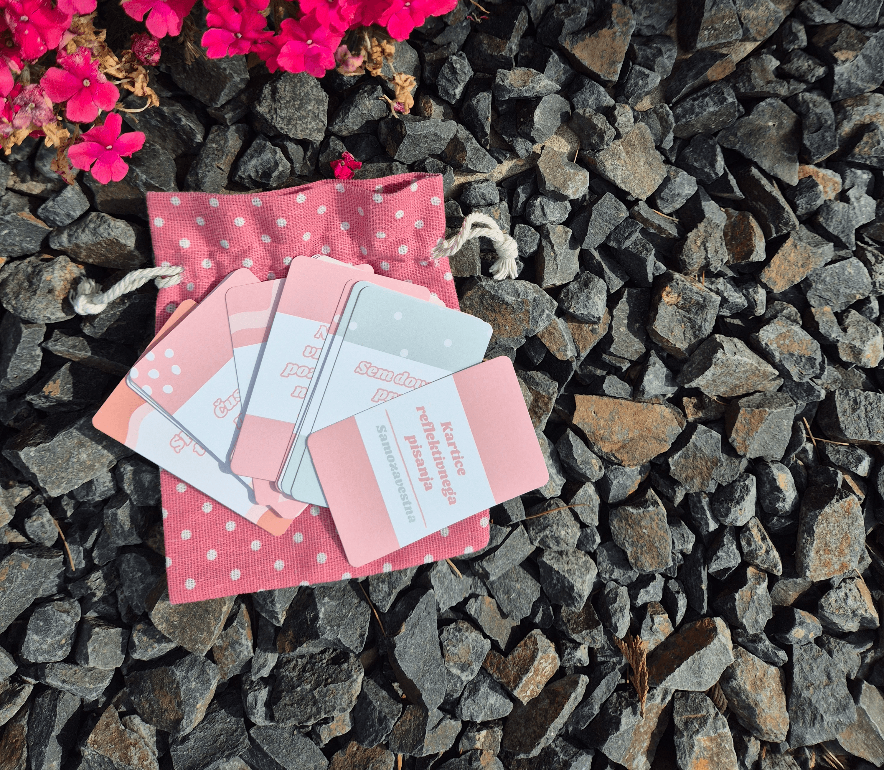 Kartice vam pomagajo, da se ustavite, prisluhnete sebi in zapišete svoje misli. Ob tem pa vas spodbudijo, da se dotaknete tem, ki jih pogosto odrivate.