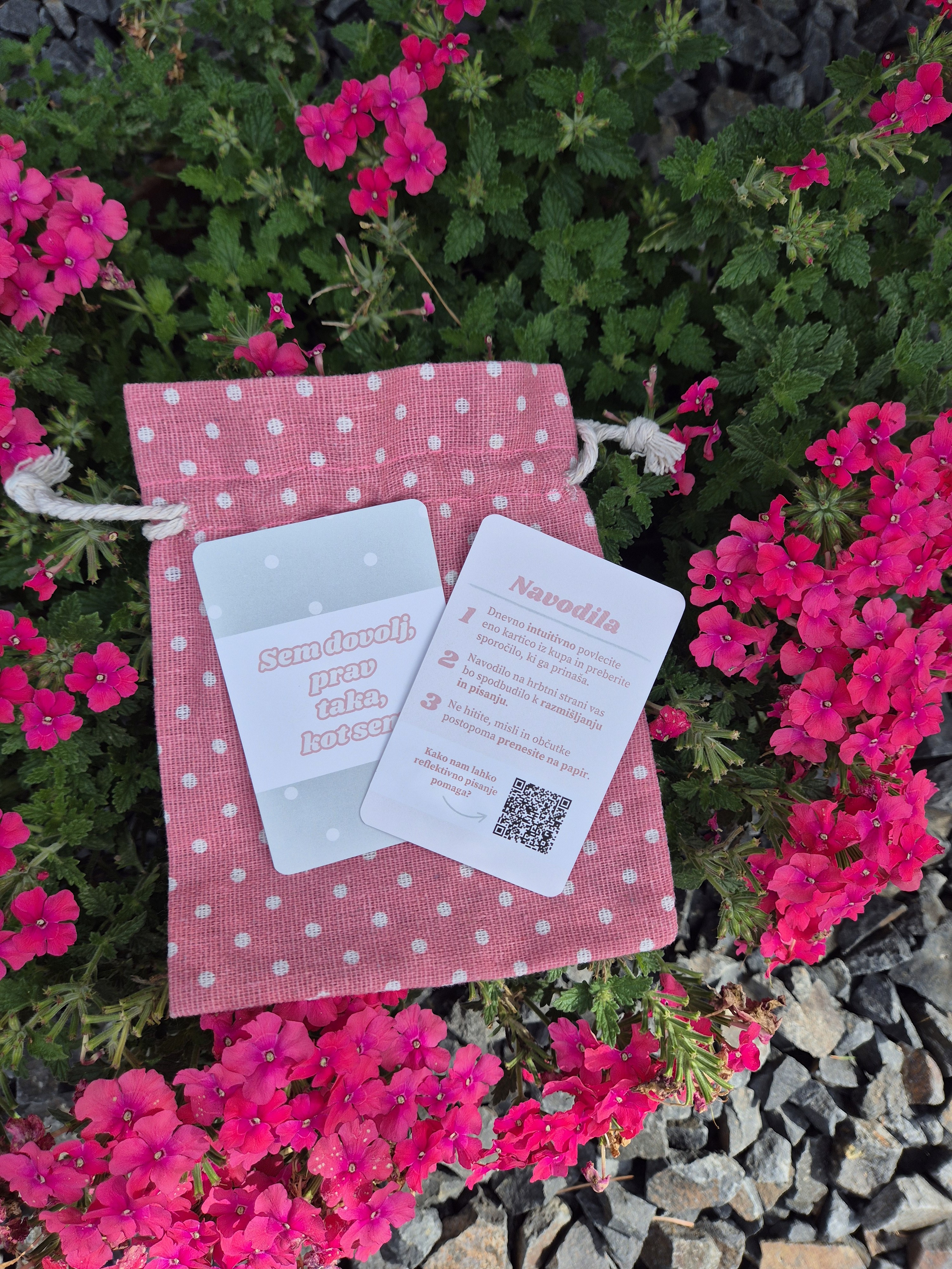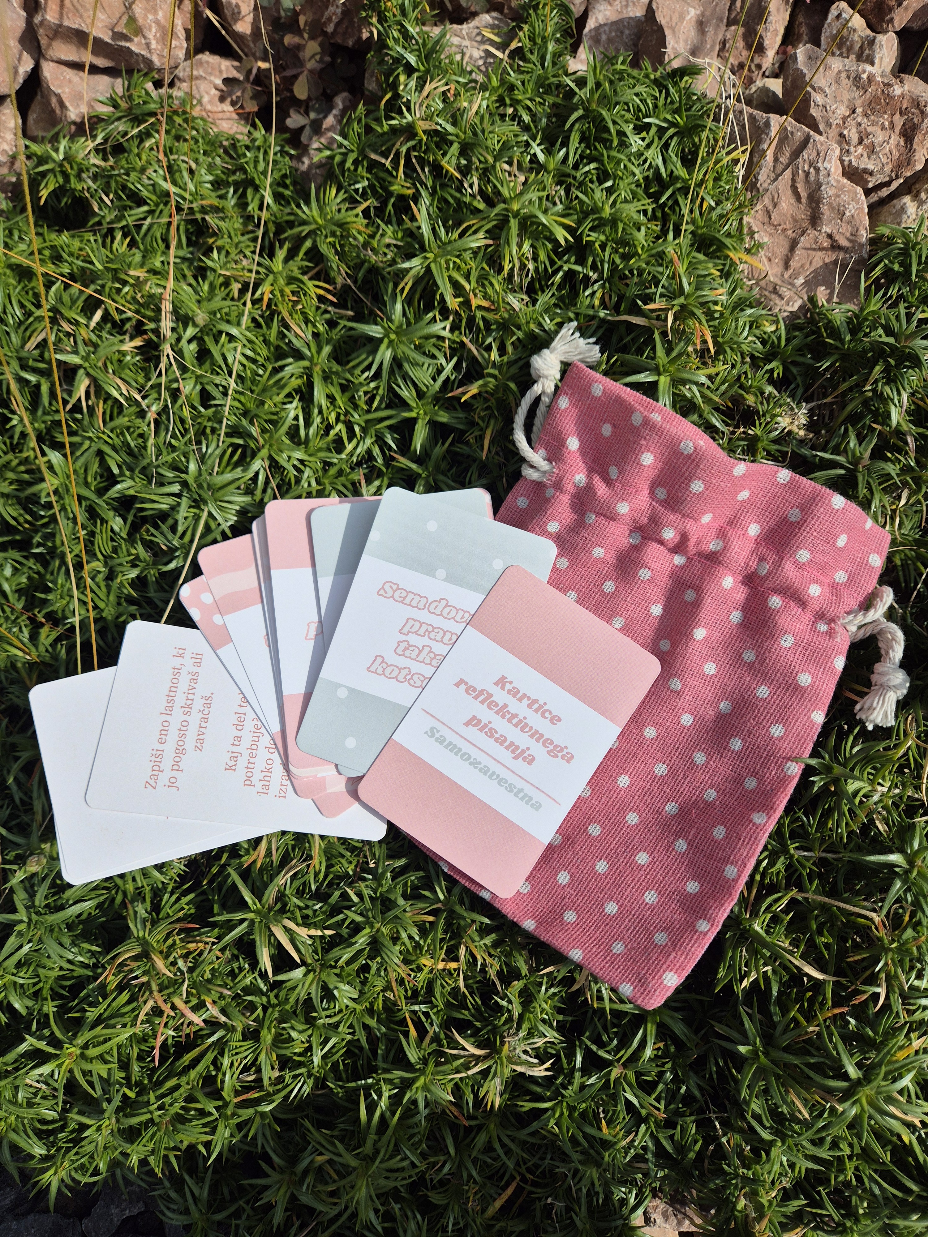 Kartice vam pomagajo, da se ustavite, prisluhnete sebi in zapišete svoje misli. Ob tem pa vas spodbudijo, da se dotaknete tem, ki jih pogosto odrivate.